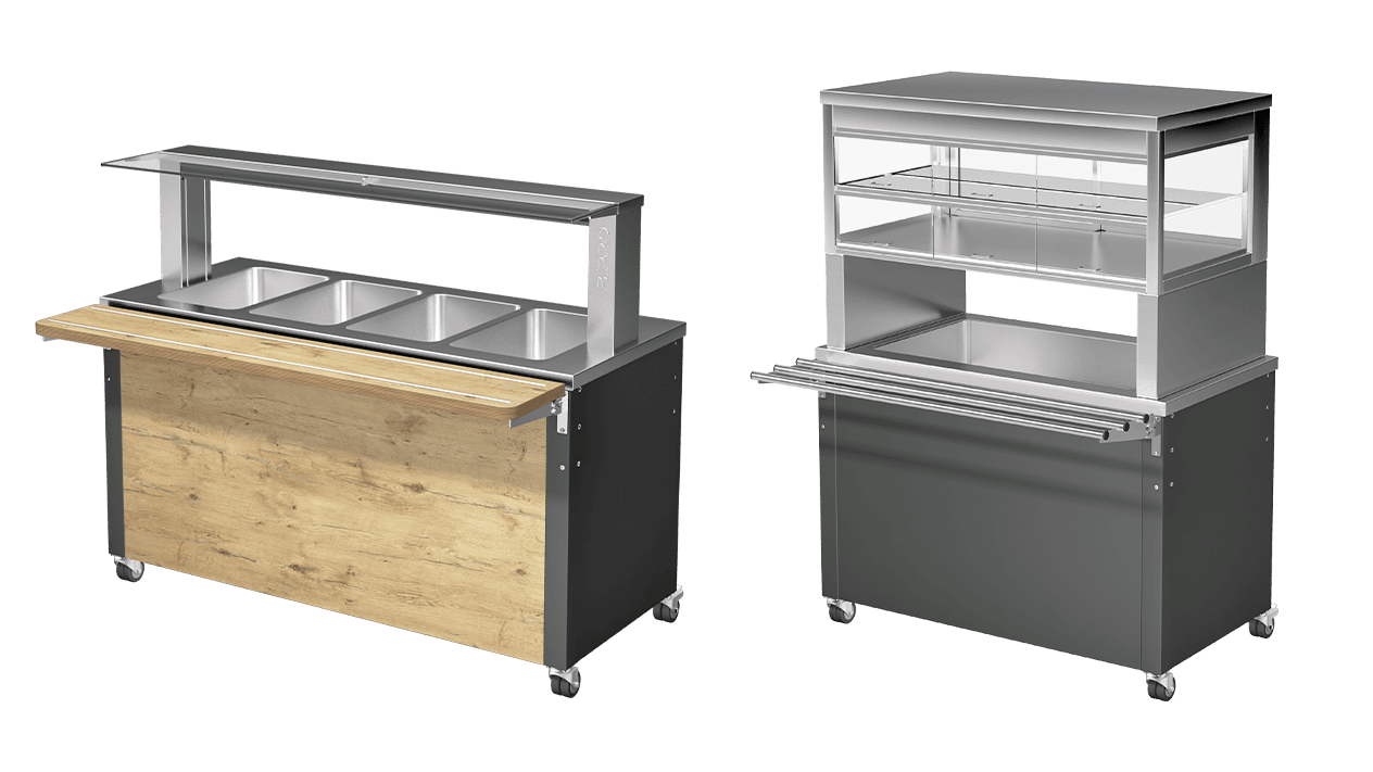 Buffet bars, refrigerated salad bars, hot counters for food, refrigerated counters and refrigerated display cabinets for professional use in company catering
