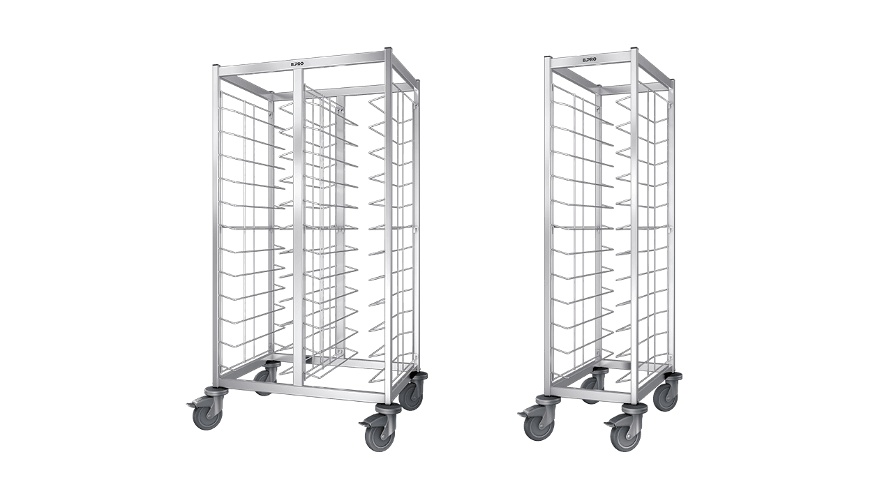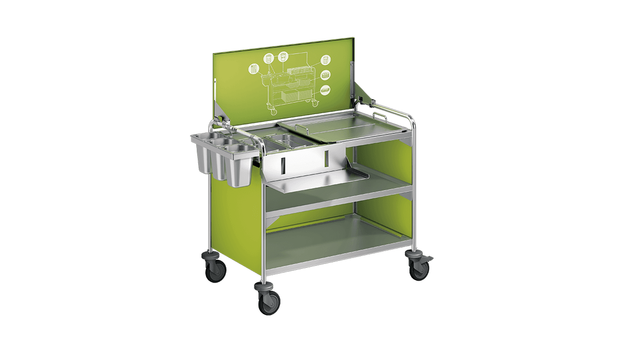 Plate dispensers, tray and cutlery trolleys and many other aids round off the food serving system. Peripheral products fulfil small and large tasks along the serving line.