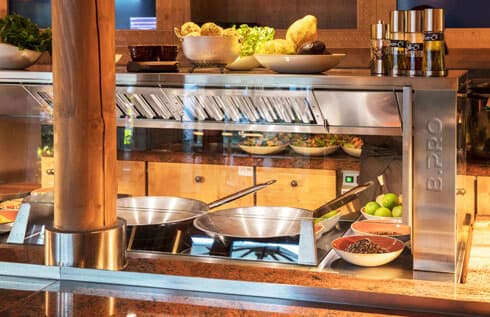 The inclusion of COOK cooking stations with integrated extractor fan creates an interactive and experience-orientated culinary offering that attracts and retains customers. The ability to watch food being prepared live or choose from a variety of options helps to create a unique dining experience and strengthen customer loyalty.