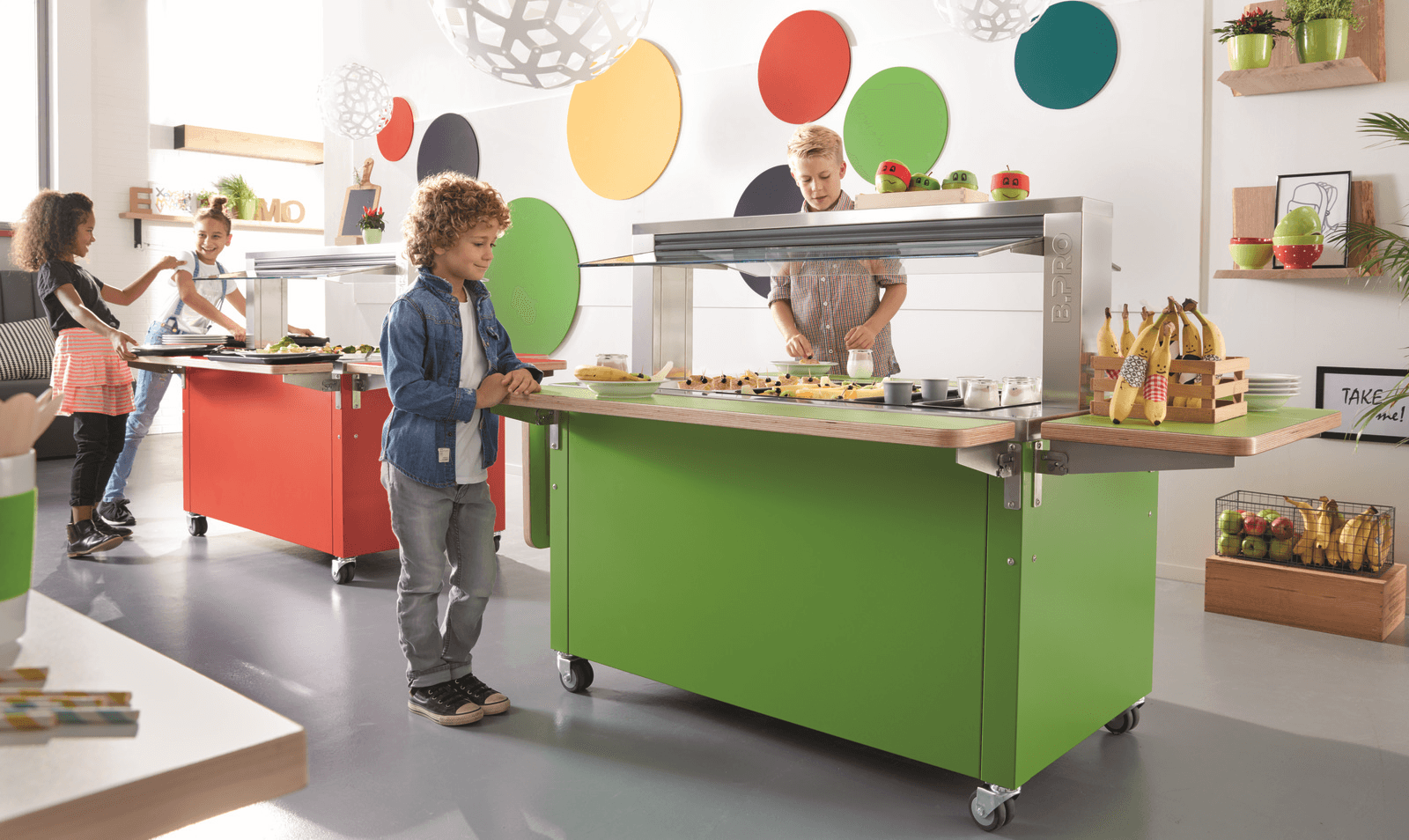 Les enfants des crèches et des écoles doivent avoir leur mot à dire dans le choix de leur déjeuner. Ce que l'on met dans leur assiette et en quelle quantité fait déjà partie de l'apprentissage et de la prise de conscience de soi. Pour cela, l'offre alimentaire doit être variée et accessible. Grâce à la hauteur des systèmes de distribution adaptée à la taille de l'enfant, celui-ci a une vue d'ensemble et peut participer aux décisions. Plus les enfants sont impliqués dans le choix, plus ils l'acceptent et sont prêts à coopérer.