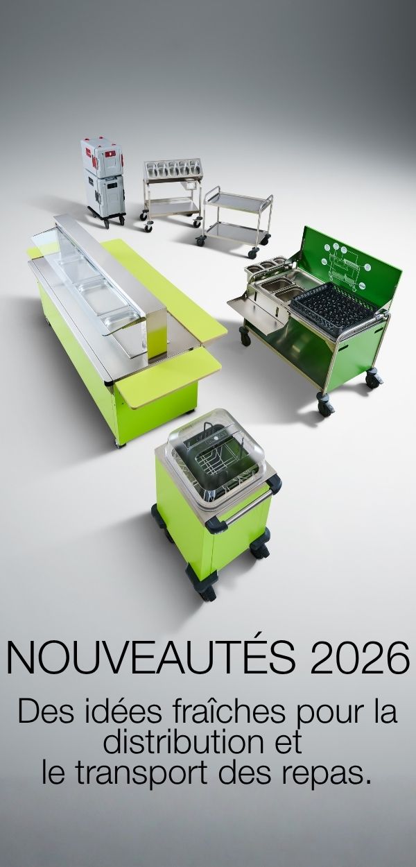 En outre, le système séduit par son design en acier inoxydable sans joints, qui répond aux normes d’hygiène les plus strictes et rend le nettoyage particulièrement facile. Divers accessoires viennent complémenter la version Kids : chariots à plateaux, chariots à couverts...