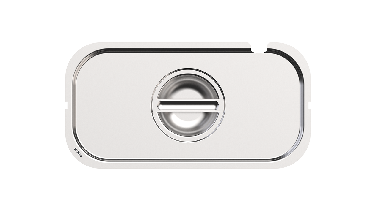 Lid with handle and ladle cut-outmade of corrosion-resistant stainless steel