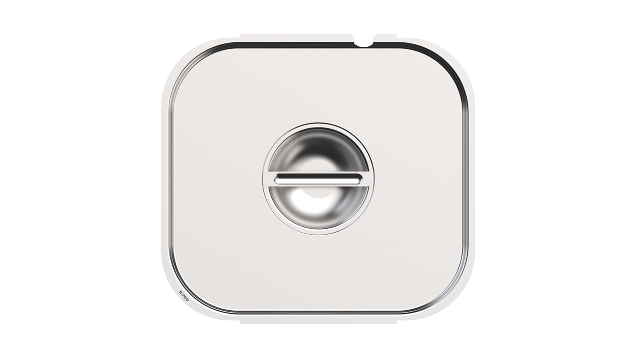 Lid with handle and ladle cut-outmade of corrosion-resistant stainless steel